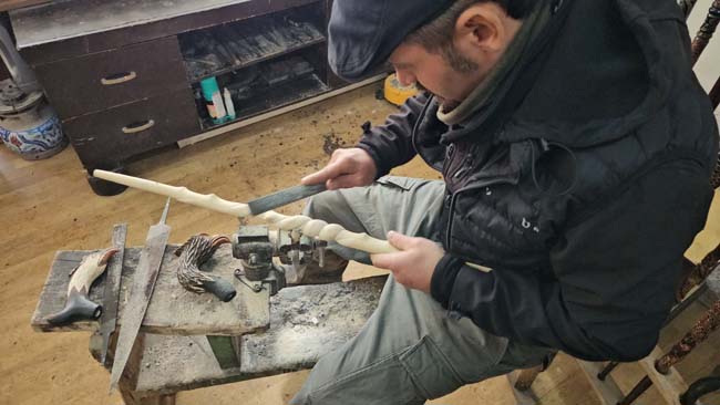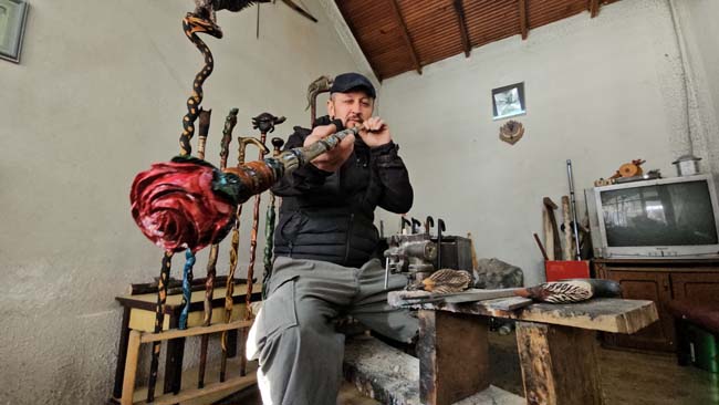 "Çocukluğumuzdan bugüne bu mesleği yapıyorum. Gerçek ustalar ağabeylerimdi. Onların yanında görerek denedim. Baktım, bende de yetenek varmış. Baston yapmaya başladım. Ağacı elime alıyorum, ne çizersem, ne istersem tamamen hayal gücümle alakalı o figürü yapabiliyorum."