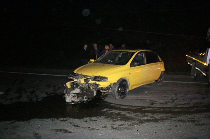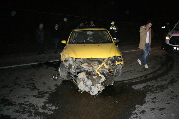 Zonguldak'ın Ereğli ilçesinde başka bir aracın sıkıştırması sonucu yolda çıkan otomobil hurdaya döndü. Kazada bir kişi hafif şekilde yaralanırken, motor bloğu fırlayan ve hurdaya dönen otomobil çekici ile kaza yerinden kaldırıldı.