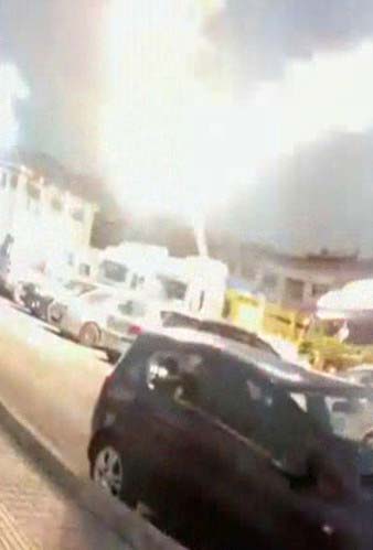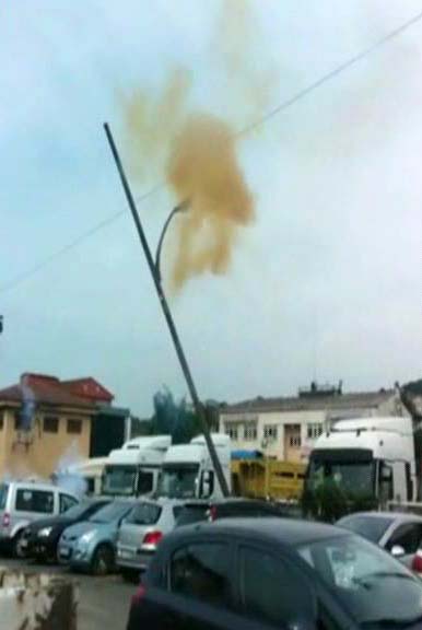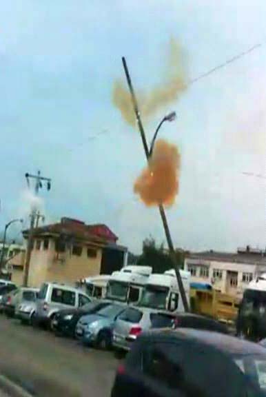 Zonguldak'ın Ereğli ilçesinde yan yatan elektrik direği bomba gibi patladı. Direğin patlama anı cep telefonu tarafından saniye saniye görüntülenirken, patlama sırasında çıkan kıvılcımların 2 araca zarar verdiği öğrenildi.