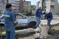 ELEKTRİK DİREĞİNE ÇARPARAK DURABİLDİ