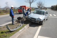 Alaplı'dan Ereğli istikametine giden 16 Y0776 plakalı hususi otomobilin sürücüsü 34 yaşındaki Atilla Baltacı, lastiğin patlaması ile direksiyon hakimiyetini kaybederek aydınlatma direğine çarptı. Direk yıkılırken sürücü Baltacı ile eşi 29 yaşındaki Mehtap Baltacı ve 6 yaşındaki çocukları Oğuzhan Baltacı yaralandı. Yaralılar, sağlık ekiplerinin ilk müdahalesinin ardından Ereğli Devlet Hastanesi'ne kaldırıldı.