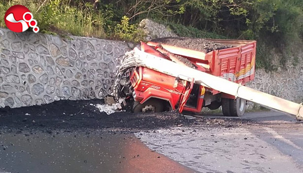 Zonguldak’ta kontrolden çıkan kamyonet beton elektrik direğine çarptı. Kazada sürücü hafif şekilde yaralandı.