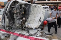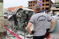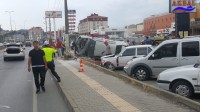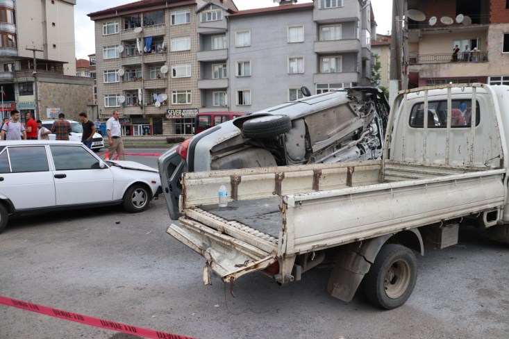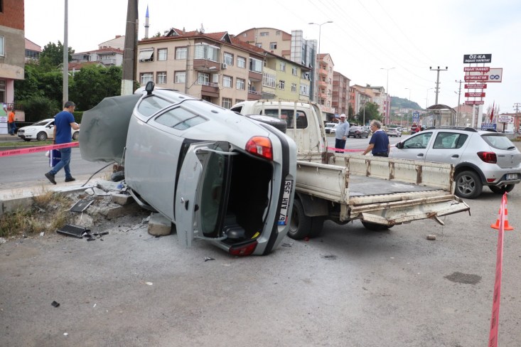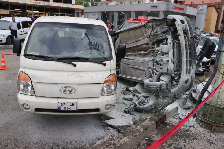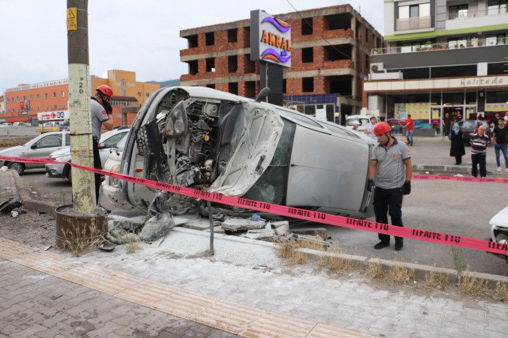direğine çarptıktan sonra park halindeki araçların üzerine devrildi. Kazayı