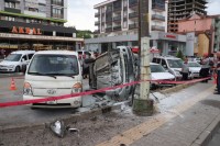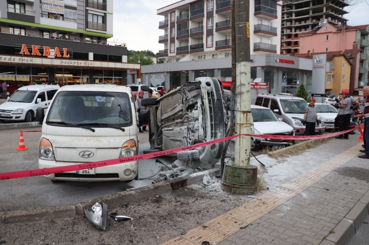 elektrik direğine çarptıktan sonra park halindeki araçların üzerine devrildi.
