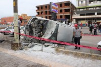 direğine çarptığı ve daha sonra da park halin deki araçların üzerine devrildiği