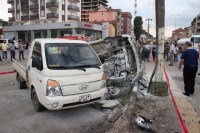 Elektrik direğine çarptı, araçların üzerine devrildi...