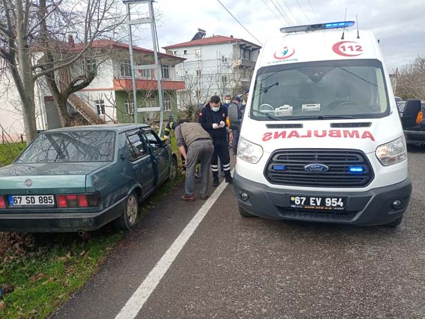 Kaza, Alaplı ilçesi Mollabey Köyü Karacallı Mahallesi mevkiinde meydana geldi. Edinilen bilgilere göre, Karacallı Köyü Mahallesi’nden Alaplı’ya giden Mustafa T. idaresindeki 67S D 885 plakalı Tofaş marka otomobil, sürücüsünün direksiyon hakimiyetini kaybetmesi sonucu kontrolden çıktı. Kontrolden çıkan otomobil elektrik direğine çarparak durabildi. Çarpmanın etkisiyle araçta bulunan Yasin K. İle Mustafa T. hafif şekilde yaralandı. Durumun haber verilmesi üzerine olay yerine sağlık ve İtfaiye ekipleri sevk edildi. Olay yerinde yapılan ilk müdahale sonrasında yaralılar Ereğli Devlet Hastanesi'ne kaldırılarak tedavi altına alındı. Jandarma kaza ile ilgili inceme başlattı.