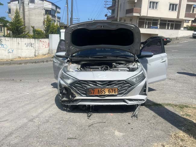 Edinilen bilgilere göre, olay sabah saatlerinde başlayan Alaplı Yeni Siteler Mahallesi Ulu Camii mevkiinde yaşandı. Henüz belirlenemeyen nedenlerden dolayı telin yere düşmesiyle kuru otlar alev aldı, ardından park halinde tutuşan otlarda A.G.'ye ait aracı sardı.