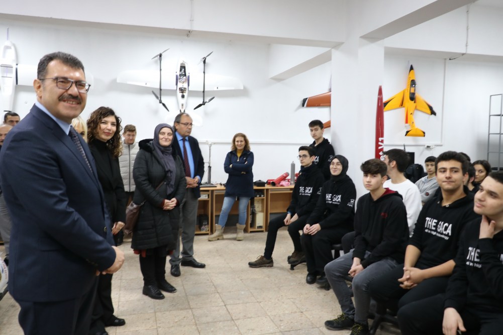 Elektrikli araç, Elektrikli otonom araç, İHA, SİHA, roket ve diğer alanlarda yapılmış ve yapılmaya devam eden ürünleri inceleyen Hasan Mandal, emek veren tüm öğrenci, öğretmen ve yöneticilere teşekkür etti.