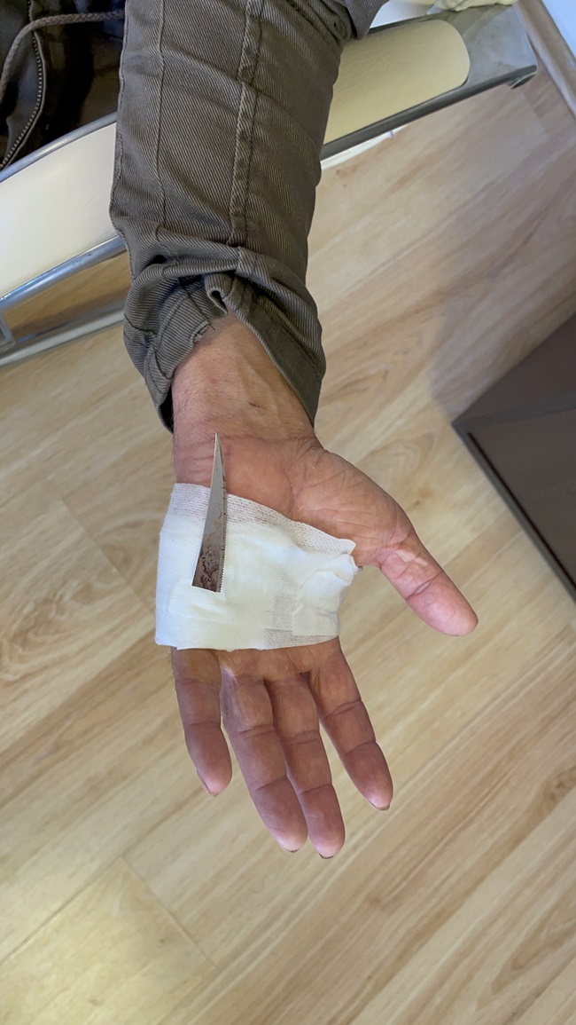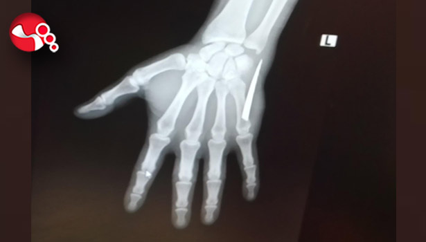 İki aydır eliyle bilek arasında kırılan bıçak parçasıyla yaşadığından habersiz olan Doğukan Köseli, “Tır şoförüyüm. Geçirdiğim kaza yüzünden belimde sıkıntım vardı. Mutfakta kalkmak isterken bıçağın üzerine düştüm. O esnada bıçak kırıldı ama parçasını göremedim. Eşimle beraber elimi sarıp Devrek Devlet Hastanesi aciline gittik. Pansuman yapacağız diye yarım saat beklettiler donra doktor Ekrem Sönmez herhangi röntgen işlem falan yapmadan elime bakıp zımba atılmasını söyledi. Kan kaybettiğim için kimse dokunamadı. Doktor Ekrem bey kendisi zımba attı. Sonrasında elimi sardılar, beni eve gönderdiler. Aradan geçen zaman zarfında dikiş yerlerim iyileşmeye başladı fakat bir yerinde yara oluştu. Sürekli kanama yapmaya başladı. Bu sebepten ötürü birkaç defa hastaneye gittiğimde pansuman yapıp gönderdiler. Film çekilmesini istedim, ‘Kırık, çıkık için film çekilir bu kadar yara için film çekilmez’ dediler. 28 Kasım Pazartesi günü daha şiddetli bir ağrıyla uyandım. Elime baktığımda bir parça olduğunu hissettim. Küçük bir parça sandım eşimle almaya çalıştık ama baya büyük olduğunu fark ettik. Bunun üzerine Çaycuma Devlet Hastanesi’ne geldik. Hemen röntgen çekildi ve elimdeki parçanın baya büyük olduğu söylenildi. Sonrasında ameliyat ile bıçağın parçasını aldılar."