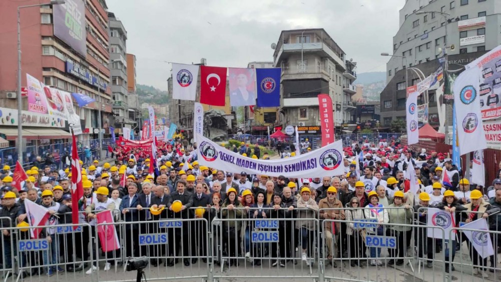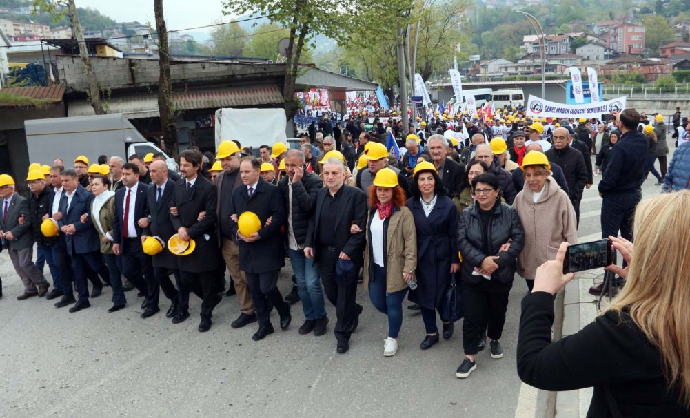 Genel Maden İşçileri Sendikası (GMİS) ve Demokrasi Platformu öncülüğünde düzenlenen 1 Mayıs Yürüyüş ve Mitingi’ne, CHP Genel Başkan Yardımcısı ve Zonguldak Milletvekili Deniz Yavuzyılmaz, Zonguldak Milletvekili Eylem Ertuğ Ertuğrul, Zonguldak Belediye Başkanı Tahsin Erdem, CHP İl Başkanı Devrim Dural, GMİS Genel Başkan Yardımcısı İsa Mutlu, GMİS Genel Sekreteri Yener Arslanbuğa, Maden Mühendisleri Odası Şube Başkanı Erdoğan Kaymakçı ile meslek odalarının yöneticileri, GMİS’in eski yöneticileri, TÜRK-İŞ’e bağlı Sendikalar ile işçi ve memur sendikalarının şube başkan ve yöneticileri, madenciler, siyasi partilerin temsilcileri, taraftar grupları, sivil toplum örgütleri, öğrenciler ile çok sayıda işçi ve memur katıldı.