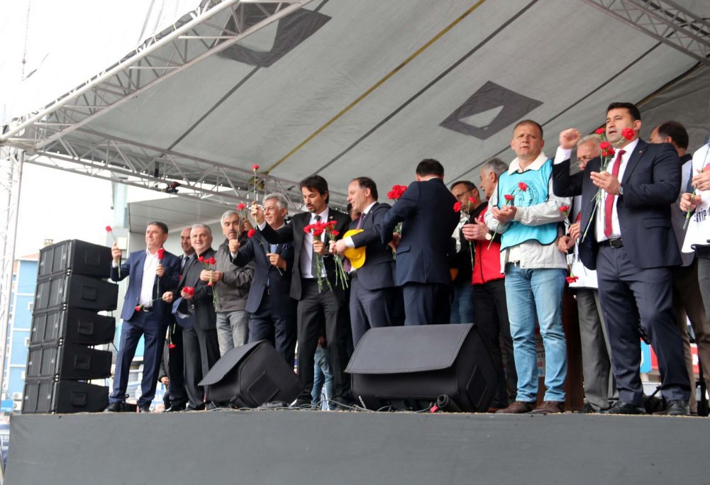 “Emeğin Başkenti Zonguldağımızın; Demokrasi aşığı, cesur, yiğit, mücadeleci insanları, sevgili kardeşlerim, 1 Mayıs Tertip Komitesi adına, Genel Maden İşçileri Sendikası Genel Sekreteri olarak, 1 Mayıs Uluslararası Birlik, Mücadele ve Dayanışma gününüzü, İşçi-Emekçi Bayramınızı kutluyorum, hoşgeldiniz.