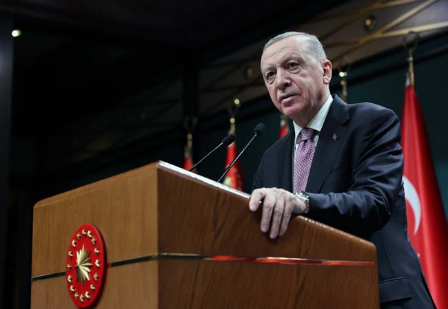 Cumhurbaşkanı Recep Tayyip Erdoğan, Beştepe'de gerçekleşen Kabine Toplantısı'nın ardından millete sesleniş konuşmasını gerçekleştirdi. 2024 yılının ilk kabine toplantının gerçekleştirildiğini ifade eden Cumhurbaşkanı Erdoğan, "2024 senesini ilk kabine toplantısının ardından sizlerle beraber olmaktan büyük bir memnuniyet duyuyoruz. Bu vesileyle bir kez daha yeni miladi yılın ülkemize milletimize ve tüm insanlığa hayırlar getirmesini Rabbimden niyaz ediyorum. Sözlerimin hemen başında harekat bölgesinde teröristlerle girdikleri çatışmada şehit düşen kahraman Mehmetçiklerimize Allah'tan rahmet, ailelerine ve silah arkadaşlarına başsağlığı diliyorum. Tedavileri şu an devam eden yaralı askerlerimize Rabb'imden acil şifalar temenni ediyorum" dedi.