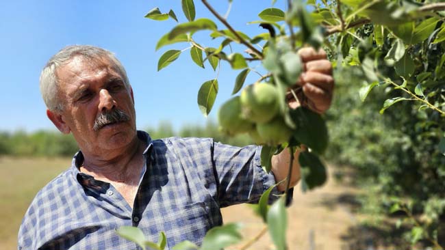 Bahçesini kurduktan sonra çevresindekileri de üretime teşvik ettiğini vurgulayan Girgin, "Ben diktikten sonra vatandaşlara dedim ki boş delikanlılar. Dedim ki oğlum babanızın cebine bakmayın para versin diye. Ben size yardımcı olurum her konuda. Siz de dikin dedim. Örnek olarak diktim. Onlara da söyledim. Onlar da dikmeye başladılar. Yani böyle üretimler çoğaldı. Aşağı yukarı bizim 300 tona yakın deveci armudu toplanıyor" ifadelerini kullandı.