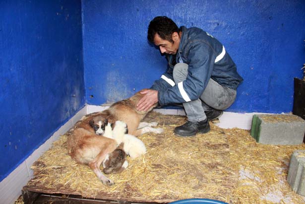 olan anne ve yavru köpekleri kurtardı