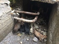 kapağını açtıklarında içeride anne ve 7 köpek yavrusu buldu. Yavru köpeklerden