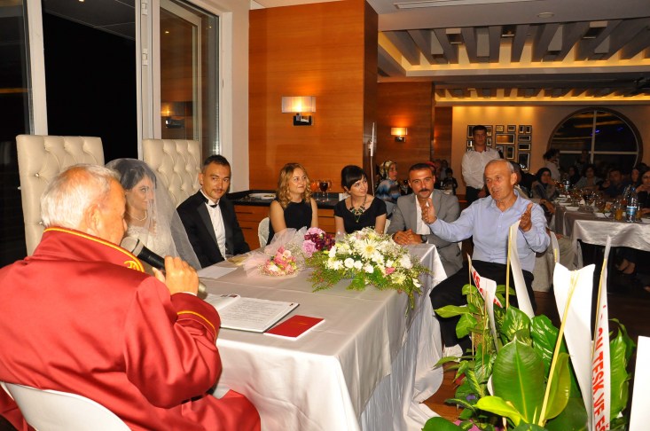 Deniz Kulübünde seçkin davetliler huzurunda yapılan düğünün nikahını Zonguldak Belediye Başkanı Muharrem Akdemir kıydı. Akdemir genç çiftlere bir ömür boyu mutluluklar dileyerek evlilik cüzdanını teslim etti ve kendilerine kahve takımı hediye ederek kahve içme sözü aldı.