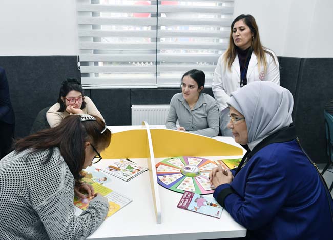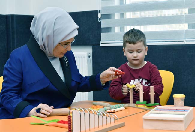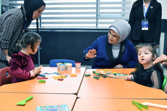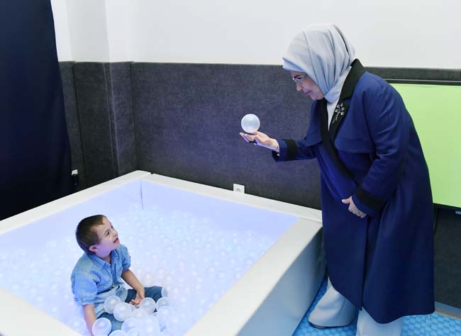 Kitap etkinliğinde okuma yapan çocukları da dinleyen Emine Erdoğan, Sıfır Atık sergisini gezdi. Öğretmenler odasında öğretmenlerle bir araya gelen Erdoğan, porsuk ağacı dalından köklendirilen fideyi kampüs bahçesine dikti. 10 metrekare alana inşa edilen Özel Eğitim Kampüsünde orta ve ağır düzeyde özel gereksinimli öğrenciler eğitim görüyor. Kampüste özel eğitim anaokulu, özel eğitim uygulama okulunun (1. 2. ve 3. kademe) yanı sıra konferans salonu, yemekhane, kapalı yüzme havuzu, sera alanları ve spor sahaları yer alıyor.