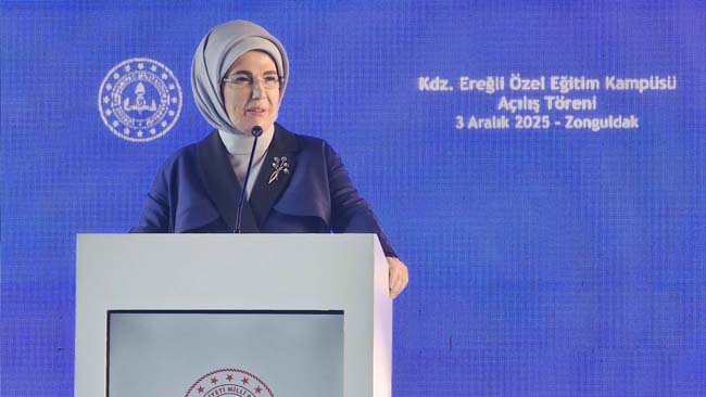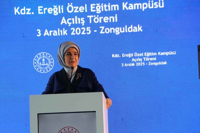Cumhurbaşkanı Recep Tayyip Erdoğan’ın eşi Emine Erdoğan, Karadeniz Ereğli Özel Eğitim Kampüsü’nün açılış programında yaptığı konuşmada, engelli bireylerin toplumun eşit, onurlu ve saygın fertleri olduğunu belirterek kapsayıcı şehirler ve erişilebilir yaşam alanları oluşturmanın devletin temel önceliklerinden biri olduğunu söyledi.