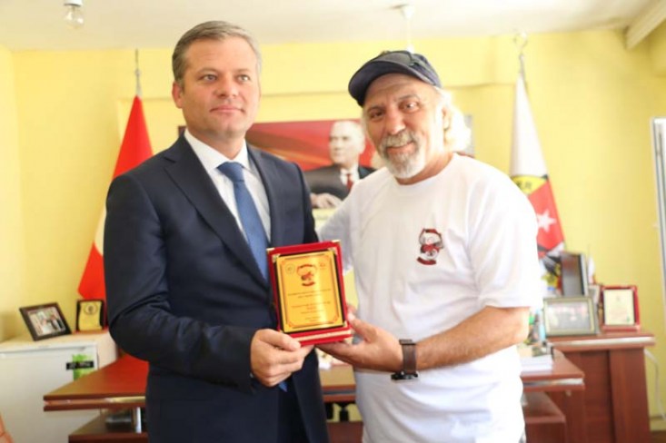 Ziyarette bulunan Kdz.Ereğli Postası Gazetesi Sahibi ve Kdz. Ereğli Motorcular Derneği Başkanı İsmet Keskin'de Eski Emniyet Müdürü Timur Özgen'e Kdz. Ereğli'de motor sporcularına yapmış olduğu desteklerden ötürü plaket hediye ederek, başarı dileklerini iletti.