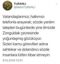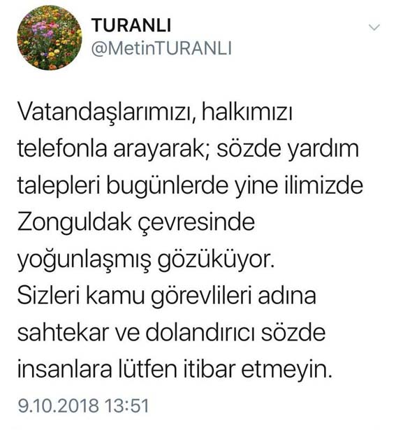 "Vatandaşımızı, halkımızı telefonla arayarak, sözde yardım talepleri bugünlerde
