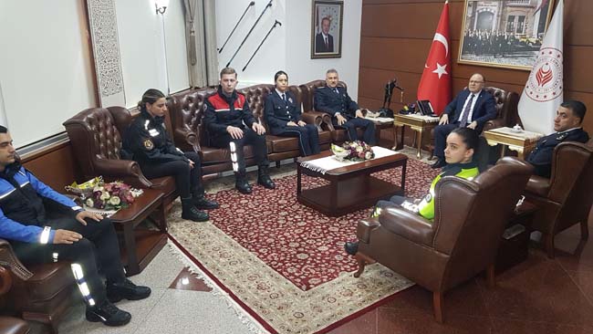 İl Emniyet Müdürü Fahri Aktaş ve emniyet mensupları, polis haftası çerçevesinde Vali Mustafa Tutulmaz’ı makamında ziyaret etti.