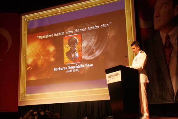 Deniz İkmal Yüzbaşı Egemen Kar, günün anlam ve önemine ilişkin konuşmasında Barbaros Hayrettin Paşa’nın yönettiği Osmanlı donanması ve Andrea Dorya komutasındaki Haçlı donanması arasında gerçekleştirilen Preveze Deniz Zaferi hakkında tarihsel bilgiler verdi.