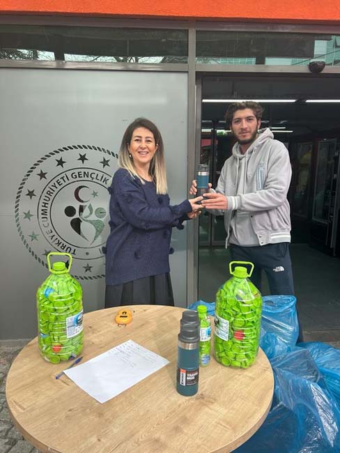 Etkinlik kapsamında öğrencilere, günlük hayatlarında atıkları nasıl azaltabilecekleri, farklı değerlendirme yöntemleri ve daha sürdürülebilir tüketim alışkanlıkları konularında bilgilendirme yapıldı. Etkinlikte en çok plastik atığı getiren öğrencilere termos takdim edildi.