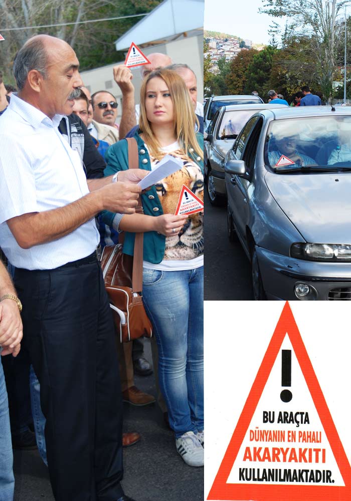 Ama artık yeter diyoruz. Bu insafsızca sömürüye, zamlara hayır diyoruz. Kdz.Ereğli halkı olarak araçlarımıza “DİKKAT ! BU ARAÇTA DÜNYA’nın EN PAHALI AKARYAKITI KULLANILMAKTADIR” Yazılı pulları araçlarımıza yapıştırarak AKP’yi protesto ediyoruz.”