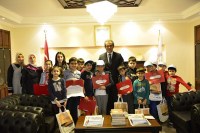 ENDERUN BULUŞMALARINA KATILAN MİNİKLER KATILIM BELGELERİNİ REKTÖR ÖZER'DEN ALDILAR