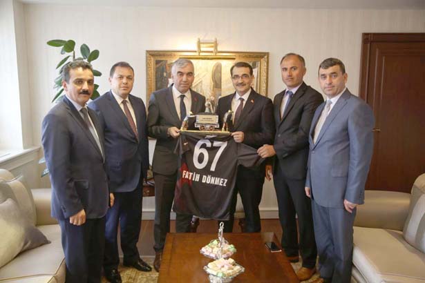 Ziyarette Bakan Dönmez'e GMİS Heyeti tarafından Kömür Vagonlu Madenci Heykeli ve üzerinde 67 numaralı ve Bakanın ismi yazan Zonguldak Kömürspor forması hediye edildi.