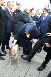 karşıladı. Karşılama sırasında protokolün arasına karışan bir köpek Bakan