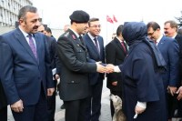 havayoluyla gelen Bakan Dönmez ve Selçuk'u havaalanında protokol üyeleri