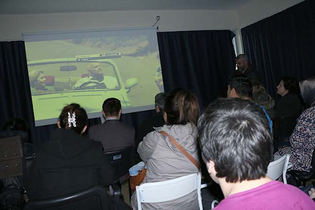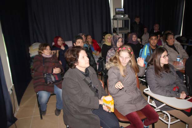 Salonda yerini alan aileler, engelli çocuklar ve üniversitede okuyan öğrenciler Düğün Dernek filmini birlikte seyretti.