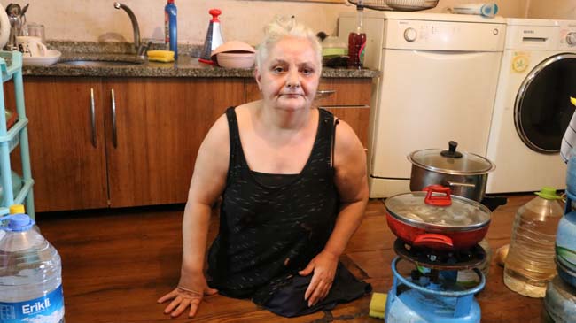 Zonguldak'ta yaşayan 60 yaşındaki Sevim Sarısoy'un 10 yaşındayken trenin altında kalınca iki bacağı birden kesildi. Hayata tutunmaya çalışan Sarısoy, günlük işlerinin tamamını elleriyle sürdürmeye çalışıyor. Elleriyle yürüyen, yemek yapan, temizlik yapan Sarısoy, yüzde 100 olan engelli raporunun yüzde 77'ye düşürülmesi nedeniyle mağduriyet yaşadığını anlattı.