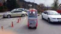 Zonguldak'ın Ereğli ilçesinde yaşayan 83 yaşındaki belinden engelli Bayram Tekce, kendi tasarladığı engelli aracı ile her gün çarşıya gidip geliyor. Yaklaşık 30 kilometre yol yaptığını kaydeden Tekce, gazetecilerin 'Tehlikeli olmuyor mu?' sorusuna "Tepe lambası ile önlem aldım." dedi.