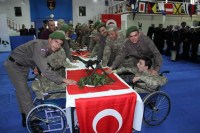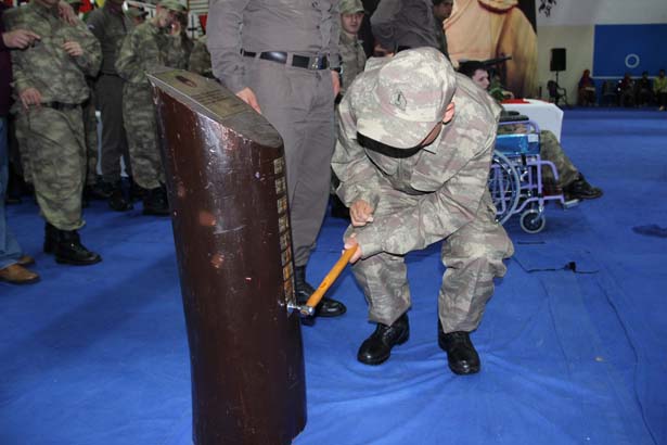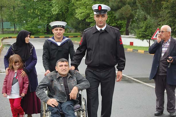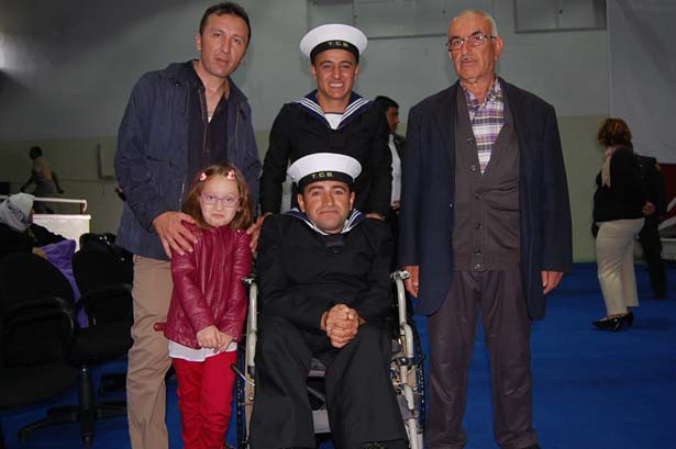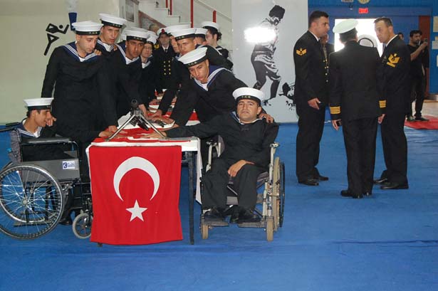 Aileleri ile birlikte sıraya girip karavana sırasına giren engelli askerler yemek duası yapıp, yemeklerini yedi. Tören alanına gelen engelliler Sayı Duruşu'nda bulunup, İstiklal Marşı'nın okunmasının ardından Türk Bayrağı ve silaha ellerini koyup askerlik yemini etti. Engelli askerlerden bir kişi kütüğe plaka çakılmasının ardından konuşan Engelli Deniz Er Mülayim Deniz, kendilerine bir günlüğüne de olsa askerlik görevine alan tüm komutanlara teşekkür etti.