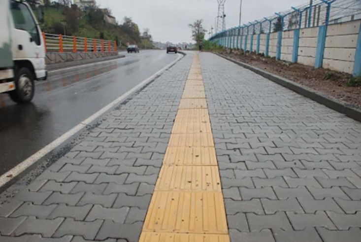 görme engelliler için döşenen özel taşların ortasına yerleştirilen levha,