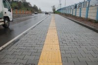 ilçesinde, görme engelliler için döşenen taşların ortasına koyulan