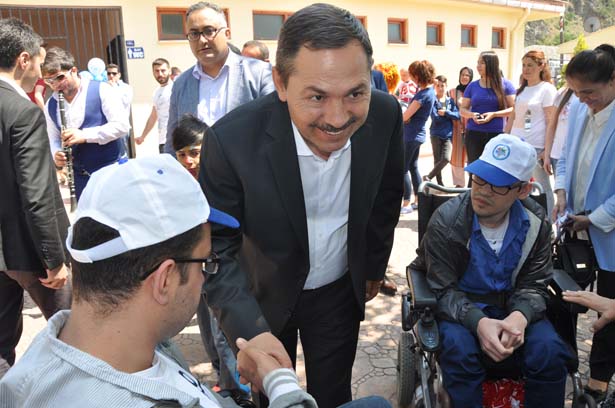 Uysal, engelli vatandaşlarla tek tek selamlaştı.