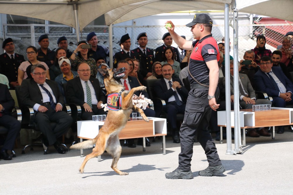 Bomba Arama Köpeği Şila'nın gösterisinin ardından protokol üyeleri ve askerlerin aileleri hatıra fotoğrafı çektirdi. Tören, pasta kesiminin ardından sona erdi.