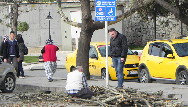 Bir vatandaşın ise ‘engelli ve gaziler’ için ayrılan park alanında odun kesmesi dikkat çekti.