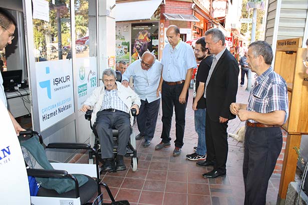 Çaycuma Belediyesi ve Türkiye Omurilik Felçlileri Derneği Zonguldak İl Temsilciliği işbirliğinde, geçirdiği boyun fıtığı ameliyatı nedeniyle engelli kalan 60 yaşındaki Ahmet Şık'a akülü tekerlekli sandalye verildi. Belediye binası önünde yapılan teslime, Türkiye Omurilik Felçlileri Derneği Zonguldak İl Temsilcisi Cem Cemal Ünal, dernekleri ile Çaycuma Belediyesinin akülü tekerlekli sandalye dağıtmaya devam ettiğini belirterek, "Bugün de Ahmet Şık ağabeyimize akülü tekerlekli sandalyesini veriyoruz. Bu tür yardımlarımız devam edecek. Onlar mutlu, biz de mutluyuz" dedi.