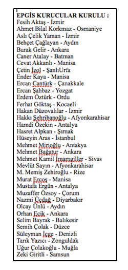Kurucu Başkan Fesih Aktaş, EPGİS'in kuruluşunda, sendkanın coğrafi olarak yaygın bir temsil kaabiliyetine sahip olmasına da dikkat edildiğini belirtti. EPGİS Kurucular Kurulu'nda, İzmir'den Kocaeli'ne, Çanakkale'den Yozgat'a, Manisa'dan Şanlıurfa'ya, Antalya'dan Samsun'a, Rize'den Batman'a, Düzce'den Hatay'a, Aydın'dan Çorum'a, Türkiye'nin pek çok ilinden isimlerin yer alması dikkat çekti.