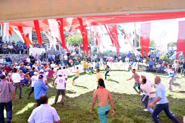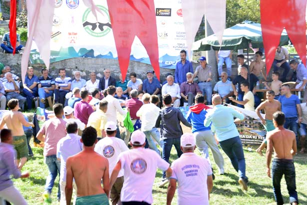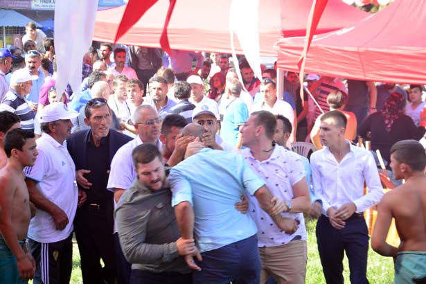 bayramlarda düzenlenen Karakucak Güreşleri'nde kavga çıktı. Tekme ve