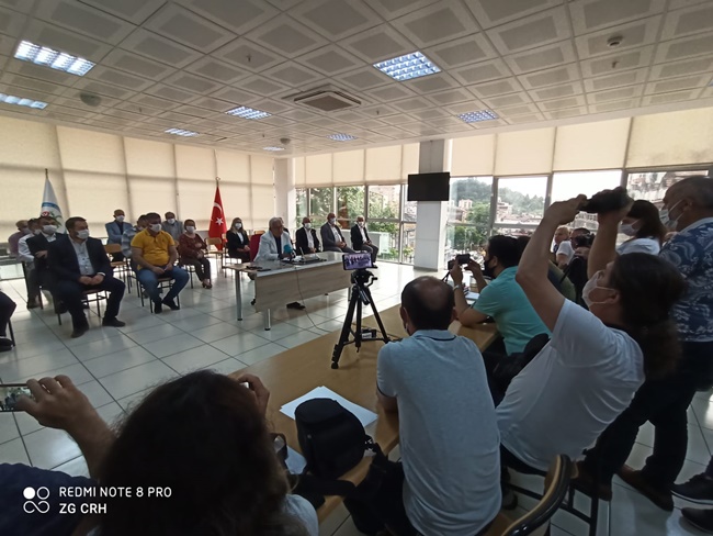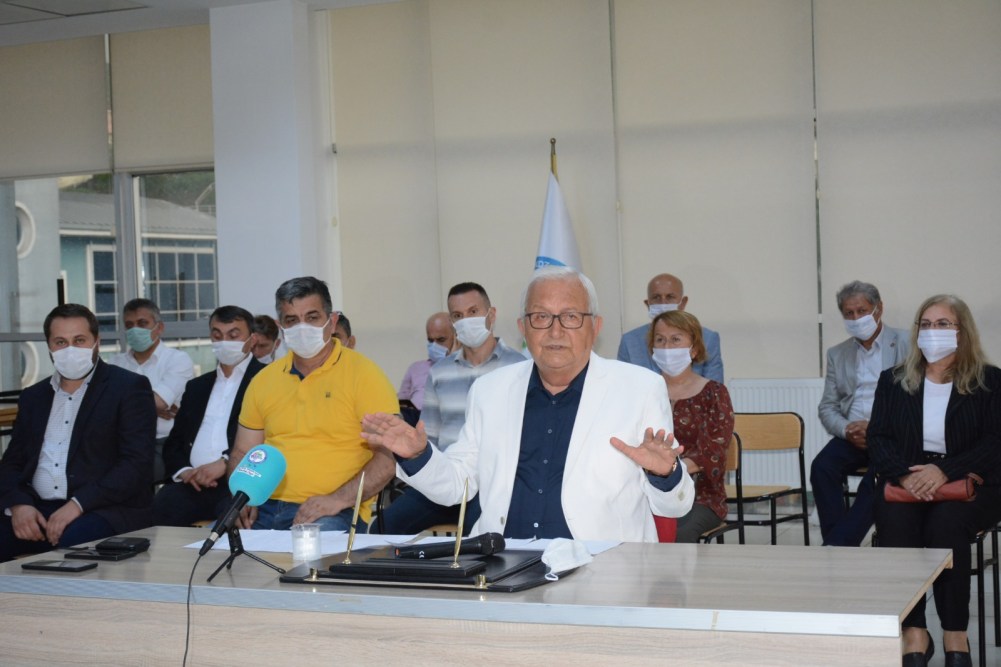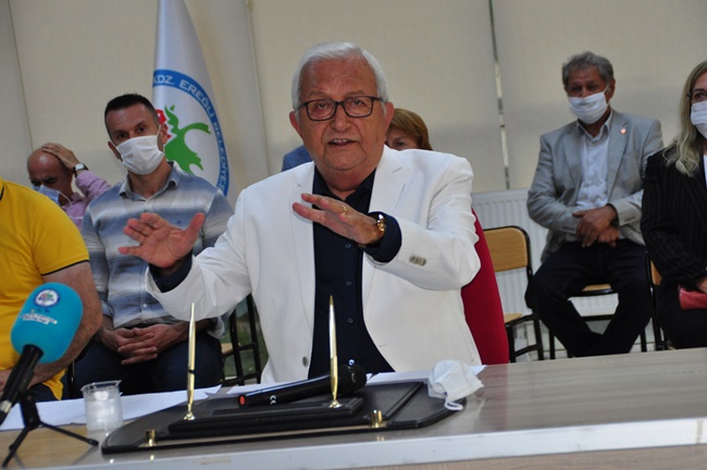 “Önümüzde çok önemli hayati bir mesele var. Bu meselede Ereğli olarak daha yeni yeni olayın farkına vardık. 18 Haziran’da mecliste yapılan bir toplantıda Gülüç Belediye Başkanımız çok değerli arkadaşım Gökhan Demirtaş’ın tepki göstermesiyle ortaya çıkan olayla patlak verdi. Biz hemen Ereğli heyeti olarak Ankara’ya gitme kararı aldık ve bakanımızla görüştük. Ereğli piyasada yok, halkı yok. Ereğli’den Milletvekili, İlçe Başkanı, Ticaret Odası Başkanı yok. Ereğli adına ‘Biz Ereğli’nin lobisiyiz’ diyen Hamdi Uçar var, arkadaşları var. Sayın Savaş Erdem’le birlikte bütün olguyu hazırlamışlar, Erdemir’i Özel Endüstri Bölgesi yapmak için tüm hazırlıkları yapmışlar, imza aşamasına gelmiş. Şimdi imza olsa Endüstri Bölgesi olacak noktaya getirmişler.