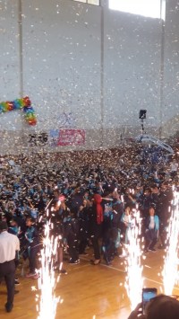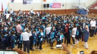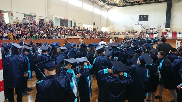 312 öğrenci hep birlikte keplerini havaya fırlatarak mezun olmanın sevincini aileleriyle birlikte yaşadılar.