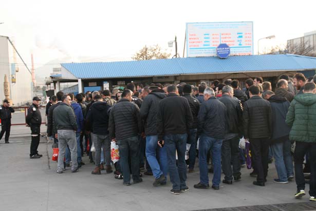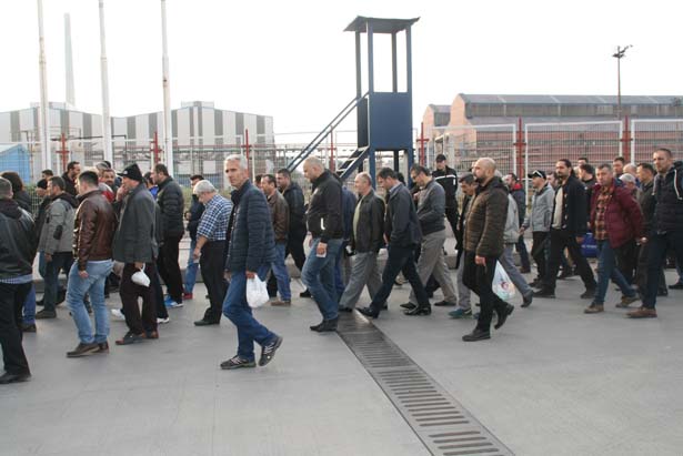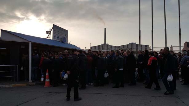 Türk Metal Sendikası tarafından alınan karar doğrultusunda gerçekleştirilen eylem kapsamında Bağlık kapı önünde servislerinden inen işçiler, Erdemir bünyesindeki işyerlerine yürüyerek gitmek amacıyla toplu olarak girişlerini gerçekleştirdi.