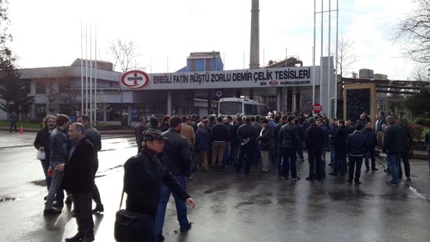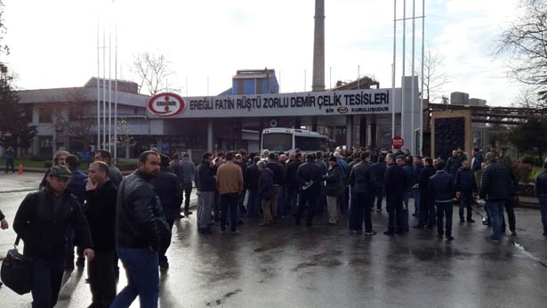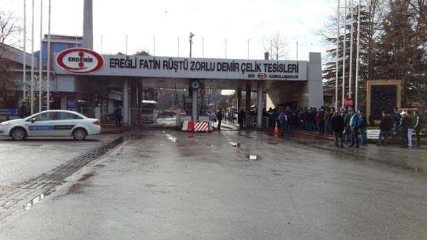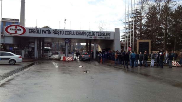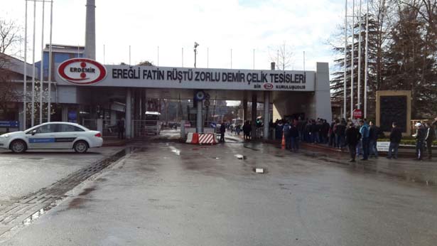 Zonguldak'ın Ereğli İlçesinde kurulu, Ereğli Demir ve Çelik Fabrikası'nda (ERDEMİR), işçiler, sessiz eylem gerçekleştirdi.