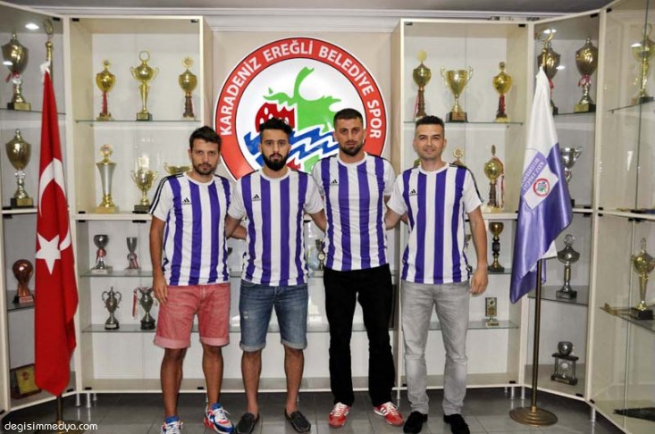 Ereğli Belediyespor, daha önce prensip anlaşmasına vardığı 4 yeni transferine de resmi imzaları arttırdı. Eflatun beyazlıların Tekirdağspor'dan transfer ettiği Ergin Ersin, Gebze Sultanorhan spor'dan transfer ettiği Erhan Şimşek ve İlker Engin ile, geçen yıl Kozlu Belediye Spor forması giyen eski oyuncusu Emre Kuzu, attıkları imzalarla resmen Ereğli Belediyesporlu oldu.